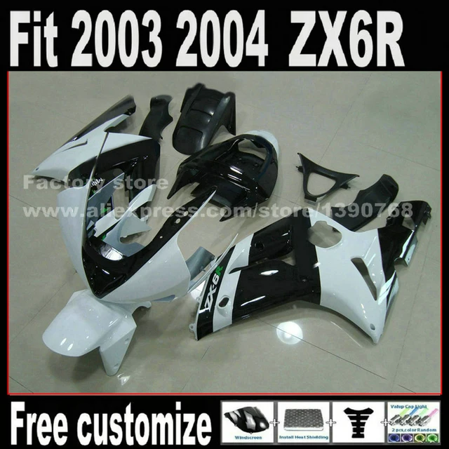 Cheap Customize free Motorcycle parts fairing kit for 2003 2004 Kawasaki ZX6R Ninja 636 white black 03 04 aftermarket Fairings set